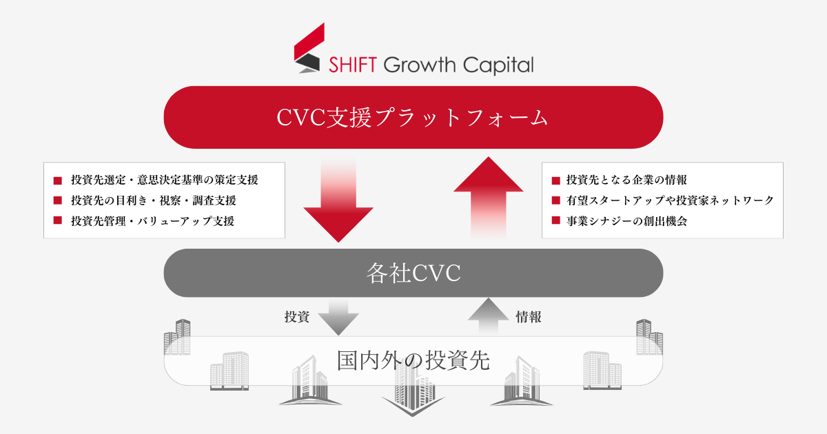 本サービスは国内外の投資先選定から管理・バリューアップなど、CVCの業務最適化を幅広くサポートするとともに、本プラットフォームを通じて得られる投資先企業情報や有望スタートアップ・投資家ネットワークを提供します。